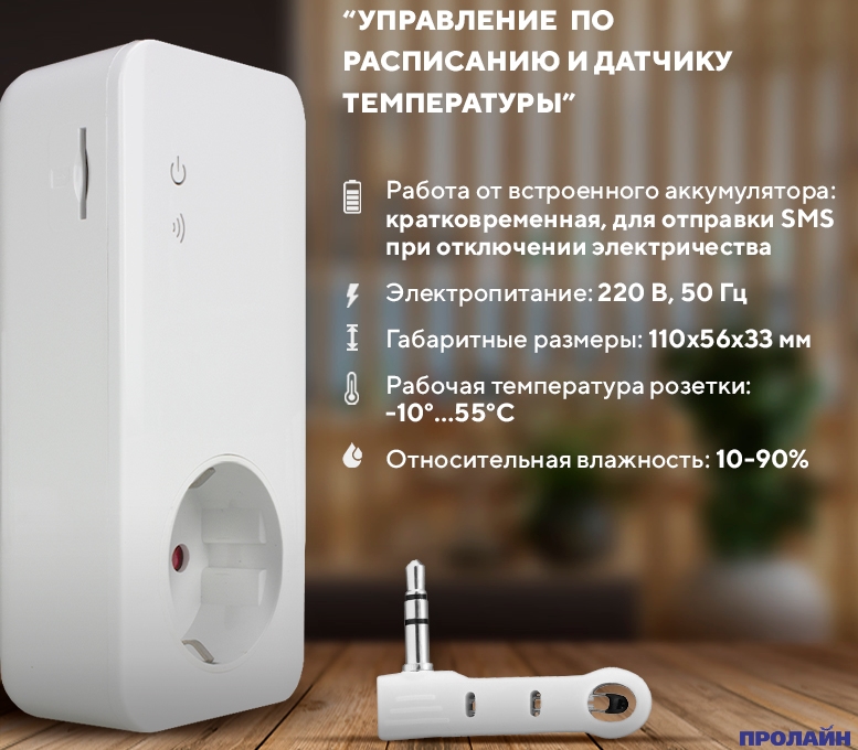 - SMS-оповещение при резком повышении температуры окружающей среды или по достижении заранее заданного порогового значения.